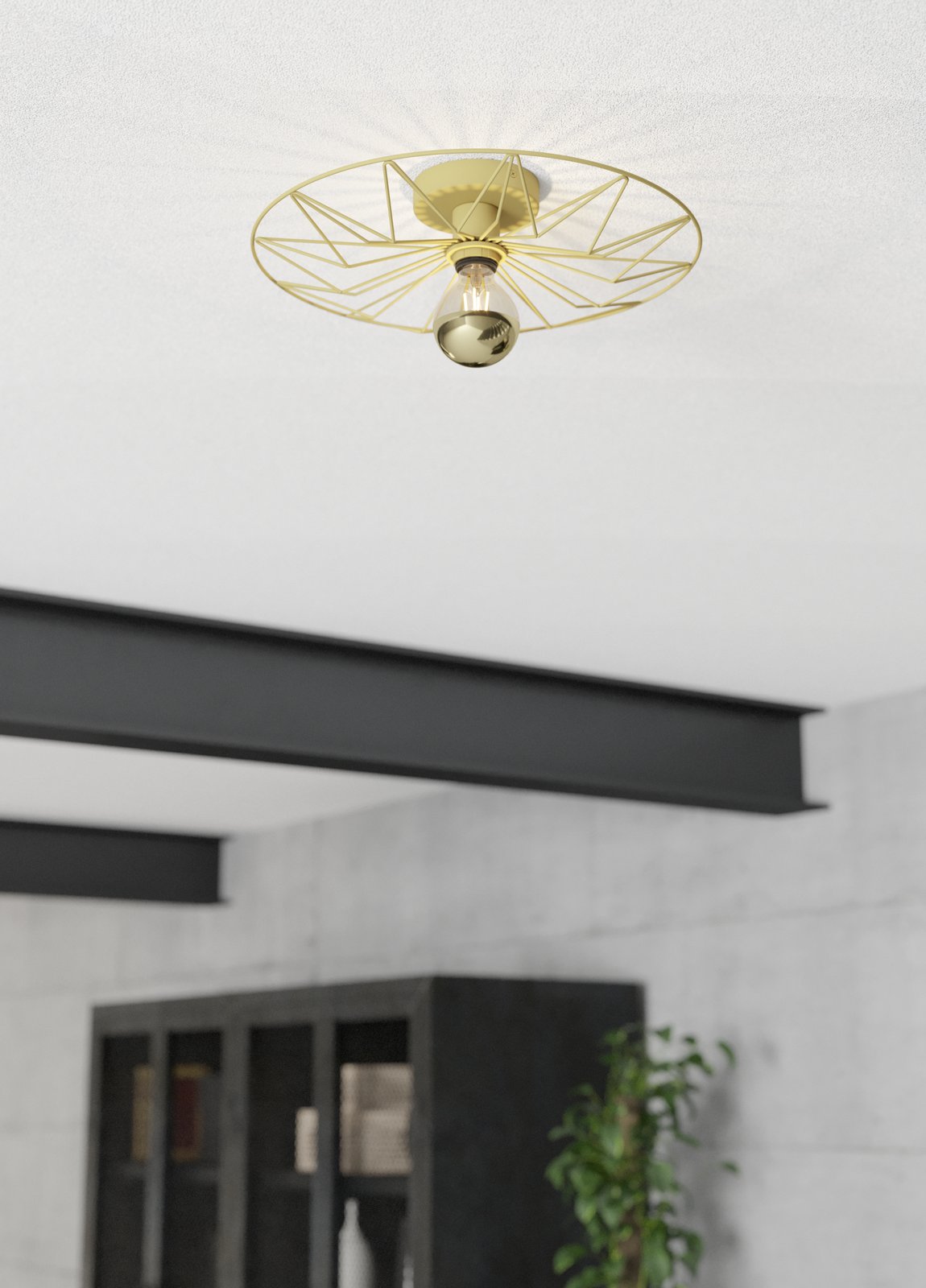Designlich interessante Deckenleuchten (mit der Möglichkeit, sie auch an der Wand zu platzieren) aus Stahl in der Farbe Gold. Sie eignen sich nicht nur für Wohnzimmer, sondern auch für Schlafzimmer und Flure. |