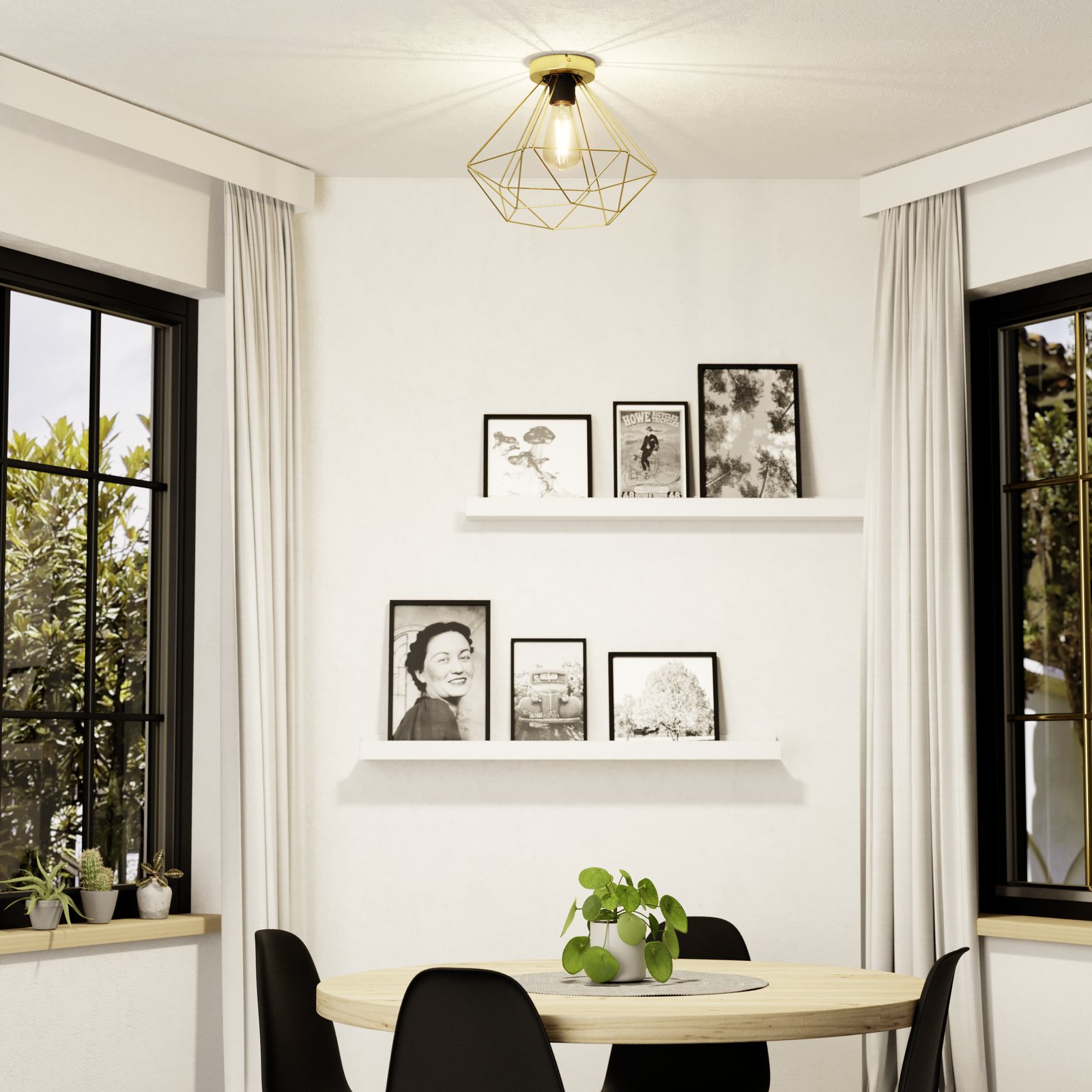 Moderne Deckenleuchten aus Metall, hergestellt aus Stahl in den Farben Schwarz und Messing. Sie eignen sich für Wohnzimmer, Schlafzimmer und Flure. |