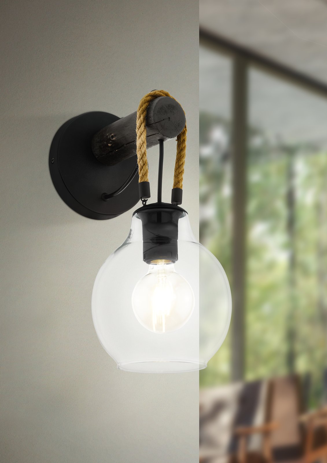 Egl-43619 WL/1 E27 SCHWARZ/HOLZ/SEIL 'RODING' -