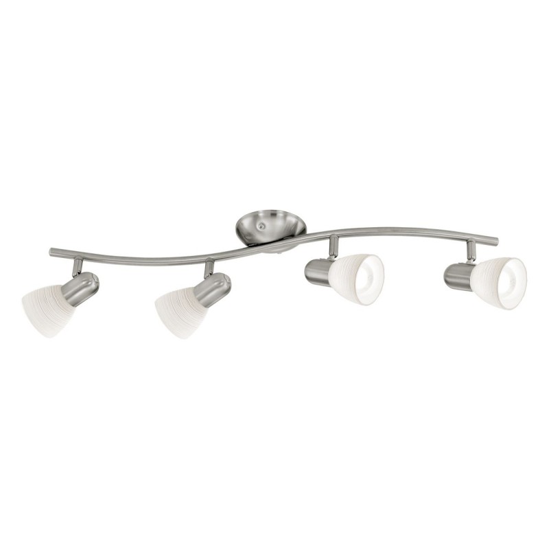 Klassische Strahler aus Metall in mattem Nickel und handgefertigtem Weißglas in der sogenannten Scraping-Technik, wodurch ein interessantes Dekor auf dem Glas entsteht.