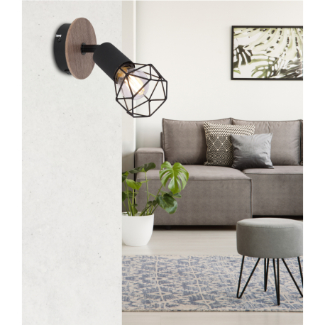 GL-54802S-1H Bodové svítidlo, kov černý, dřevo hnědé, vypínač, ?xV: 10x17cm, H:17cm, bez žárovky 1xE14, max. 40W 230V -