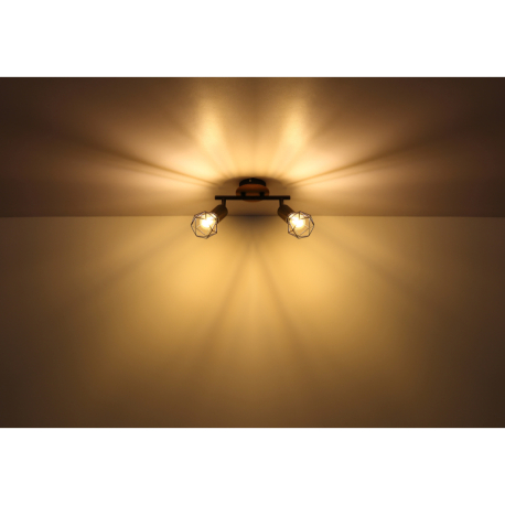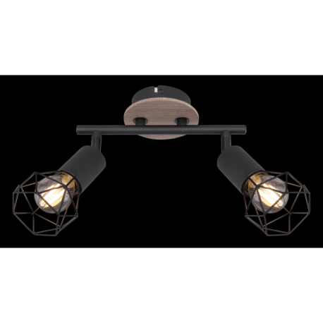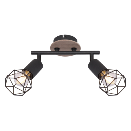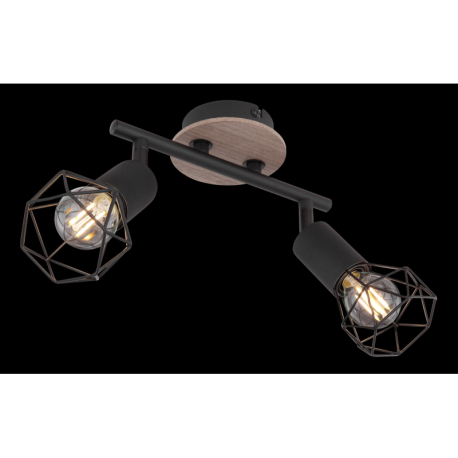 GL-54802S-2H Bodové svítidlo, kov černý, dřevo hnědé, Dx?xV: 22x10x18cm, bez žárovek 2xE14, max. 40W 230V -