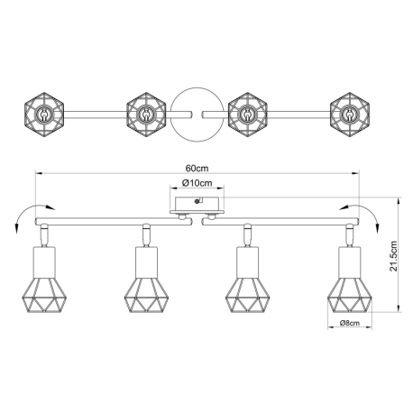 GL-54802S-4H Stropní svítidlo, kov černý, dřevo přírodní, nastavitelné, Dx?xV: 60x10x22cm, bez žárovek 4xE14, max. 40W 230V -