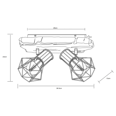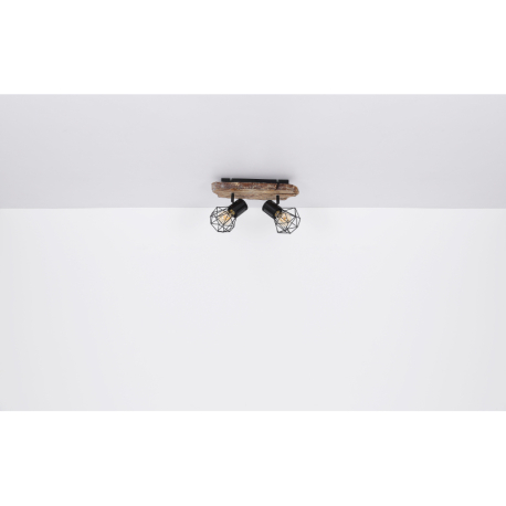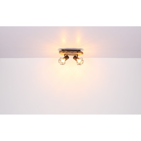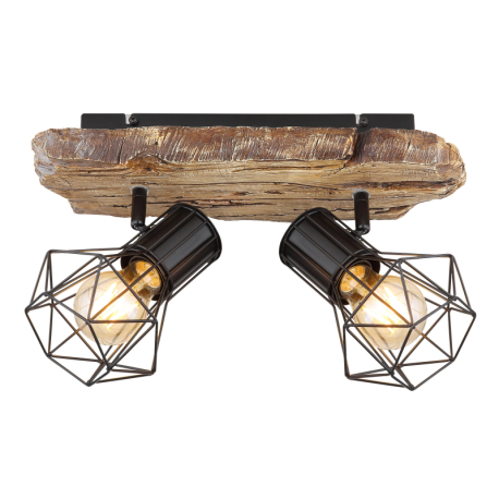 GL-54017W-2 Nástěnné svítidlo, kov černý, plast vzhled dřeva, kovová mřížka, Dx?xV: 39x12x23cm, bez žárovek 2xE27, max. 60W 230V -