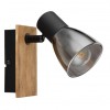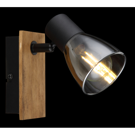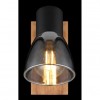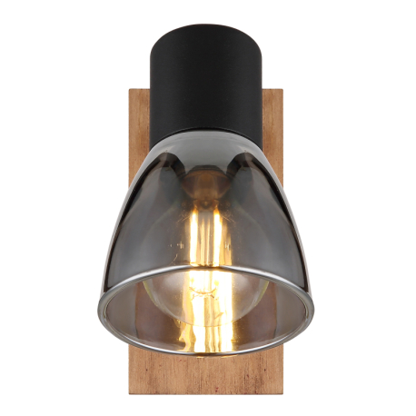 GL-54307-1W  Nástěnné svítidlo, dřevo hnědé, kov černý, kouřové sklo, s vypínačem, ?xV: 7x14cm, H:16cm, bez žárovky 1xE14, max. 40W 230V -