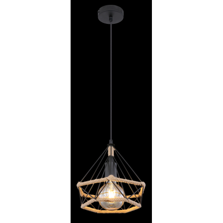 GL-69029H2 Závěsné svítidlo, kov černý matný, konopné lano hnědé, Ø25cm, V:150cm, bez žárovky 1xE27, max. 40W 230V -