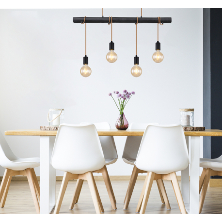 Die schlichten, aber dekorativen Metallleuchten Leo und Gregor mit Holzkörper und Stoffkabel sind eine gute Wahl für eine Leuchte über dem Küchentisch. |