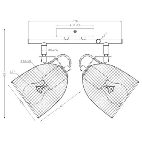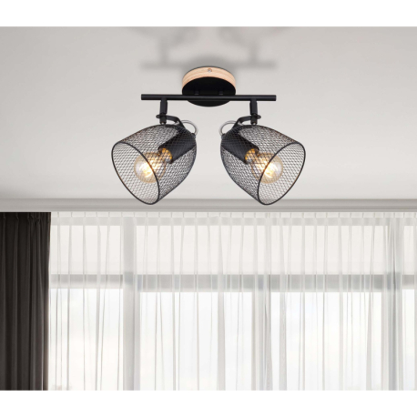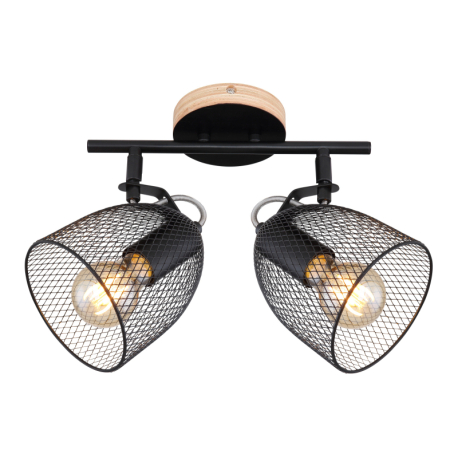 GL-54034-2 Nástěnné svítidlo, dřevo hnědé a černé, kov černý, mřížované kovové stínítko, Dx?xV: 27x13x26cm, bez žárovek 2xE27, max. 60W 230V -