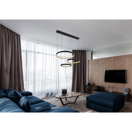 GL-67193-55H  Závěsné svítidlo, kov černý/zlatý, akryl bílý, stmívatelné, vícekrokové ovládání přes nástěnný vypínač, fixace barvy, paměť, noční světlo, dál.ovládání, Dx?xV: 77x51x150cm, LED 55W 230V, 6500lm zdroj, 1800lm výstup, změna barva světla 2700- 6000K -