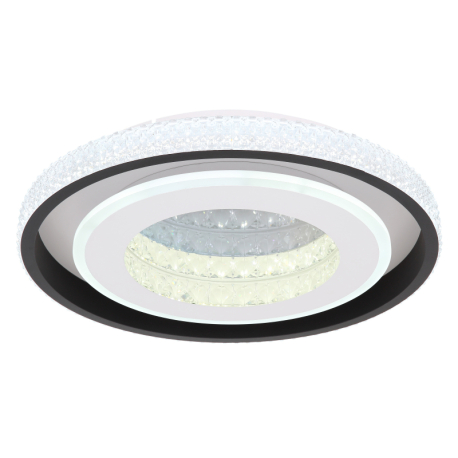 GL-41290-52 Stropní svítidlo, kov bílý a černý, akryl bílý, akrylové křišťály průhledné, paměťová funkce, noční světlo, stmívatelné, dálkové ovládání, fixace barvy, vrátane2xAAA, Ø50cm, V:8cm, LED 52W 230V, 5400 zdroj, 2260lm výstup, CCT 2700-6000K -