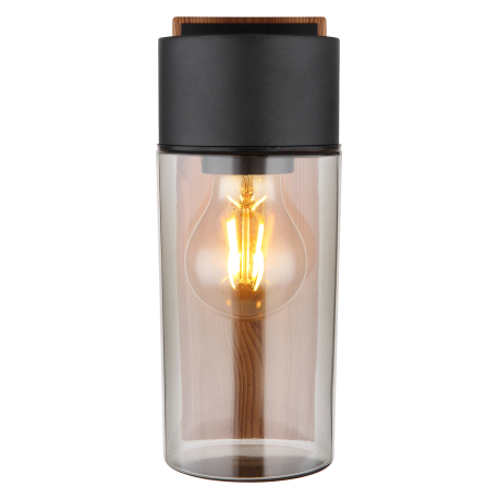 GL-31975 Venkovní svítidlo nerezová ocel imitace dřeva, nerezová ocel černá matná, sklo kouřové barvy, směr světla: dolů, IP44, ?xV:90x225mm, H:124mm, bez žárovky 1xE27 40W 230V -