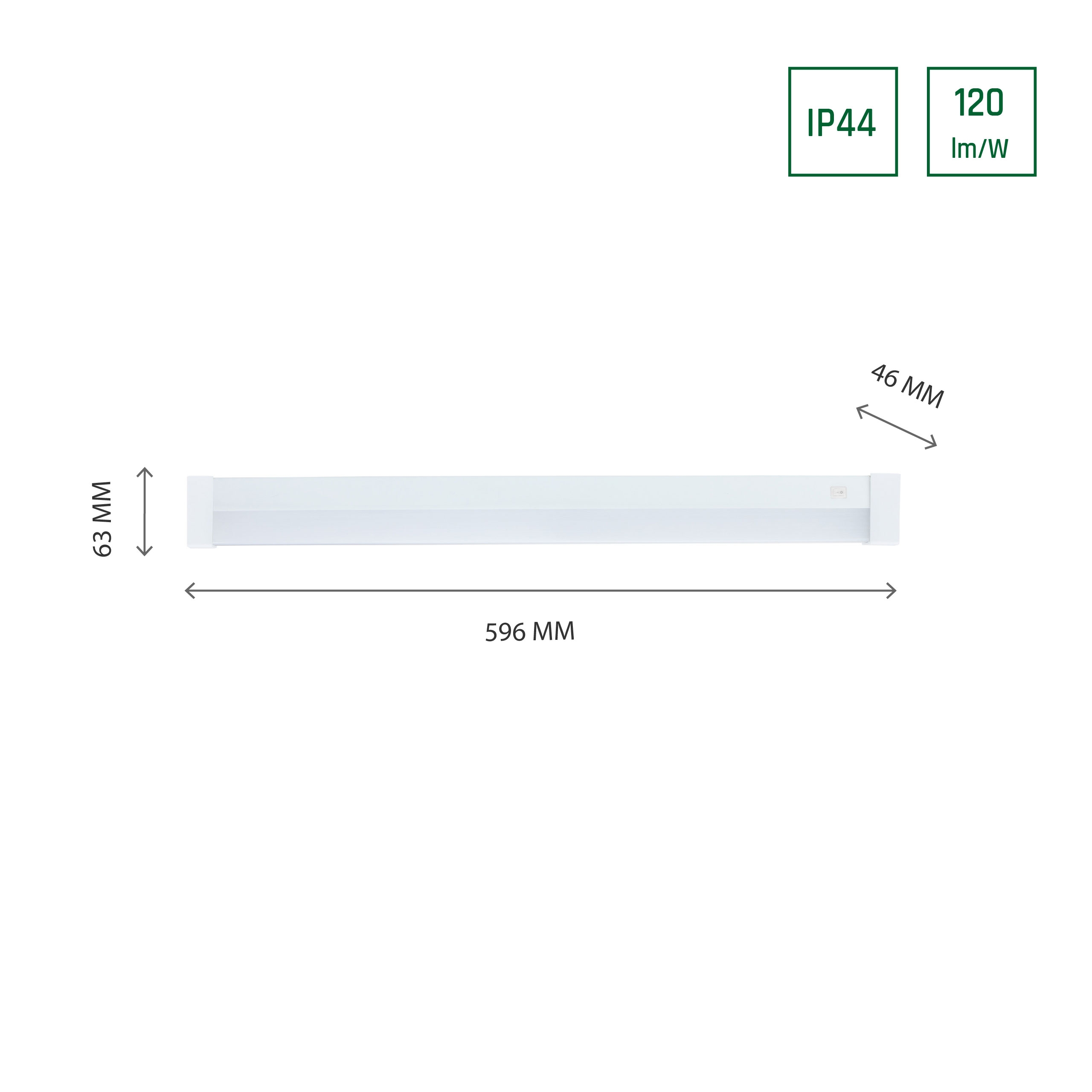 Woj-SLI043017CW_PW AQUATICA 15W CW 230V 150st IP44 596x46x63 WHITE square ends, switch -