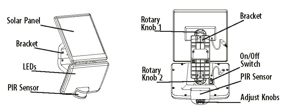 Solarleuchte mit PIR-Bewegungssensor. |