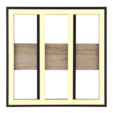 GL-67291-18 Stropní svítidlo kov černý mat, MDF imitace dřeva, plast bílý, hliník černý mat, Dx?xV:300x300x55mm, LED 18W 230V, 2200lm zdroj, 1700lm výstup, 3000K -
