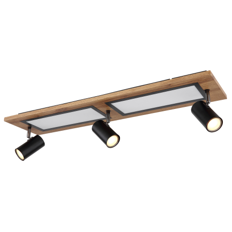 GL-67306D1 Stropní svítidlo kov černý, MDF, imitace tmavého dřeva, plast bílý, přepínání funkcí nástěnným vypínačem, paměť, přepínání: LED/GU10/obojí dohromady, 800x200x180mm, LED 24W 230V, 3000lm zdroj, 1500lm výstup, 3000K, bez žárovek 3xGU10 LED 5W 230V -