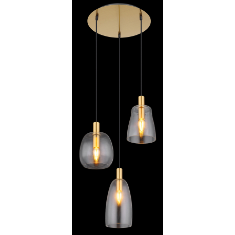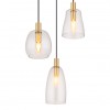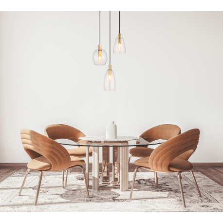 Hängelampen geeignet für Küchen, Esszimmer, aber auch Wohnzimmer. Sie bestehen aus Aluminium und messingfarbenem Metall, die Lampenschirme bestehen aus klarem Glas. |