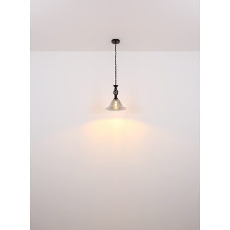 GL-60298H Závěsné svítidlo, kov černý matný, kouřové sklo, kabel PVC černý, Ø:295mm, V:1300mm, bez žárovky 1xE27,max. 60W 230V -