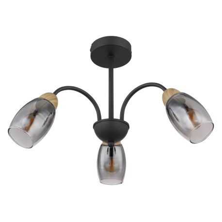 GL-60297-3D Stropní svítidlo kov černý matný, sklo kouřové, kov imitace dřeva, Ø:470mm, V:290mm, bez žárovek 3xE14 25W 230V -