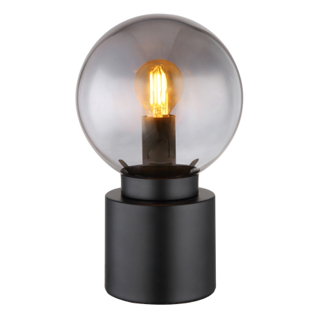 GL-21003B Stolní lampa, kov černý matný, sklo kouřové, kolébkový vypínač na kabelu, Ø:150mm, V:245mm, délka kabelu 1500mm, bez žárovky 1xE14, 25W 230V -