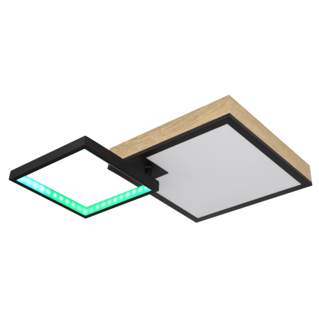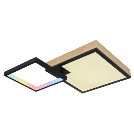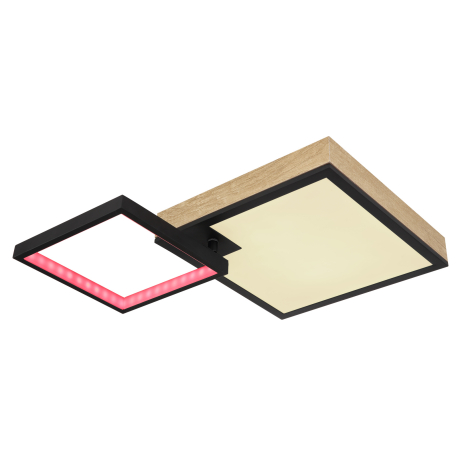 GL-41392-21 Stropní svítidlo kov černý matný, MDF imitace dřeva, akryl bílý, stmívatelné, několik úrovní prostřednictvím nástěnného spínače,RGB duhový efekt,paměťová funkce,dálkové ovládání, Dx?xV:600x410x100mm, LED 21W+3W RGB 230V, 100-1000lm, CCT2700-6500K -
