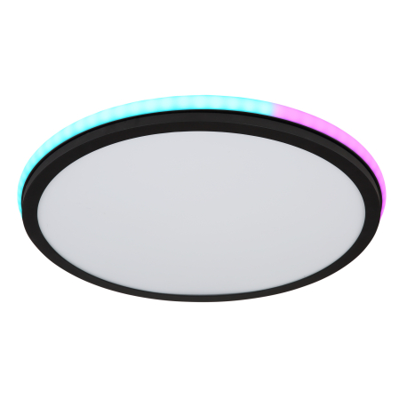 GL-41391-40R Stropní svítidlo kov černý matný, bílá, akryl bílý, stmívatelné, několik úrovní přes nástěnný spínač, RGB duhový efekt, paměťová funkce, dálkové ovládání, Ø:450mm V:70mm, LED 40W+5W RGB 230V, 425-4250lm zdroj, 200-2000lm výstup, CCT2700-6500K -