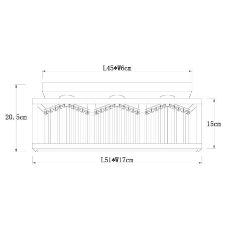GL-15697-3D  Stropní svítidlo kov černý matný, skleněné krystaly kouřové barvy, Dx?xV:510x170x205mm, bez žárovek 3xE27 40W 230V -