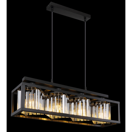 GL-15697-4H Závěsné svítidlo kov černý matný, skleněné krystaly kouřové barvy, možnost nastavení výšky, Dx?xV:680x170x1200mm, bez žárovek 4x E27 40W 230V -