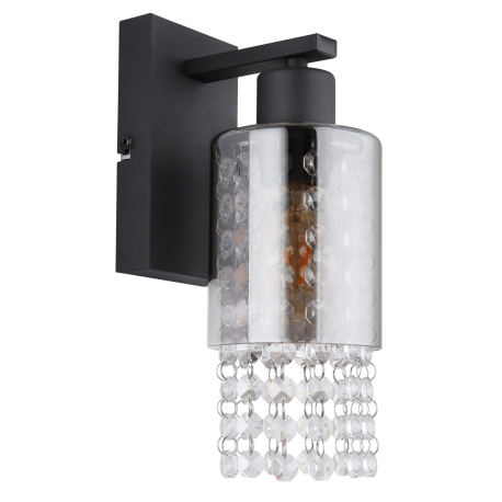 GL-15799W Nástěnné svítidlo, kov černý matný, sklo kouřové, skleněné krystaly čiré, směr světla dolů, ?xV:100x270mm, H:150mm, bez žárovky 1xE27 40W 230V -