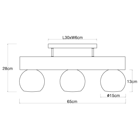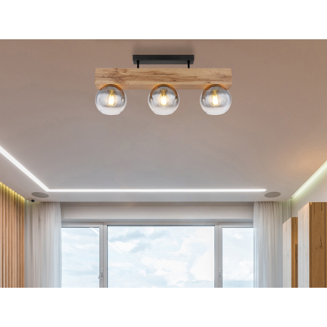 GL-15656-3D Stropní svítidlo kov černý matný, MDF, imitace tmavého dřeva, kouřové sklo, Dx?xV:650x150x280mm, bez žárovek 3xE27 40W 230V -