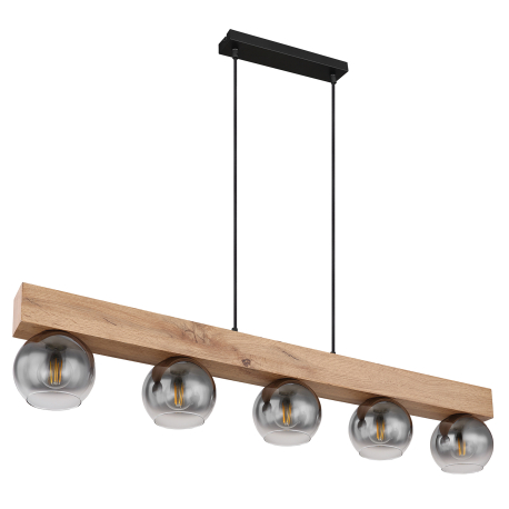GL-15656-5H Závěsné svítidlo kov černý matný, MDF imitace dřeva, sklo kouřové, čiré, textilní kabel černý, výškově nastavitelné, Dx?xV:1150x150x1200mm, bez žárovek 5x E27 40W 230V -