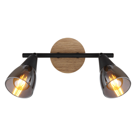 GL-54311-2 Nástěnné svítidlo, bodové, kov černý matný, dřevo hnědé, sklo kouřové, Dx?xV:255x100x195mm, bez žárovek 2xE14,max. 25W 230V -