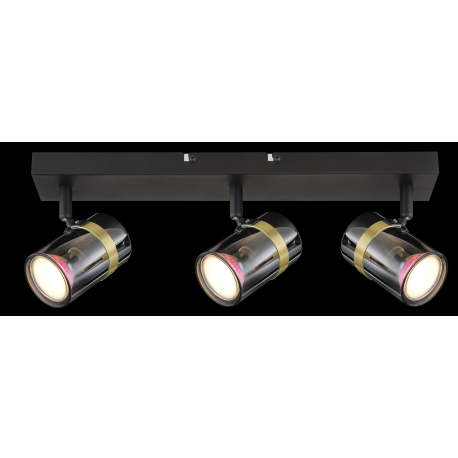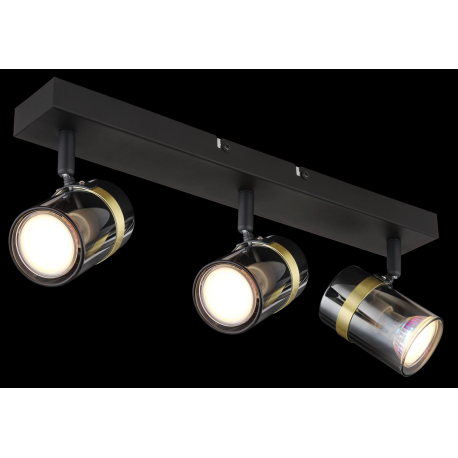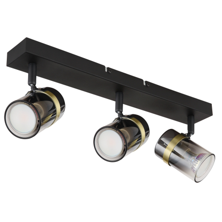 GL-57916-3 Stropní svítidlo, bodové, kov černý matný, kouřové sklo s přechodem do průhledného skla, kov mosaz, Dx?xV:410x60x125mm, bez žárovek 3xGU10,max. 8W 230V -