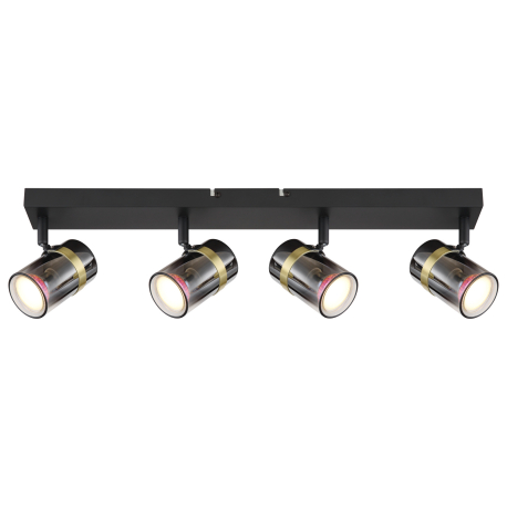 GL-57916-4 Stropní svítidlo, bodové, kov černý matný, kouřové sklo s přechodem do průhledného skla, mosaz, Dx?xV:560x60x125mm, bez žárovek 4xGU10,max. 8W 230V -