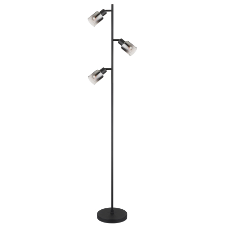 GL-54308S Stojací svítidlo, kov černý matný, kouřové sklo s přechodem do průhledného skla, kabel PVC černý, nožní spínač v kabelu, Ø:230mm, V:1540mm, délka kabelu 1800mm, bez žárovek 3xE14,max. 40W 230V -