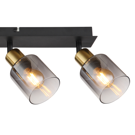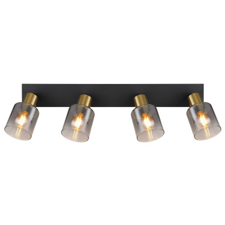 GL-54310-4 Stropní svítidlo, kov černý matný, kov zlatý matný, sklo kouřové, průhledné, Dx?xV:550x80x182mm, bez žárovek 4xE14,max. 40W 230V -