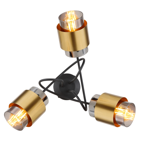 GL-15560-3D Stropní svítidlo kov černý matný, sklo kouřové, mosazný kroužek, Ø:500mm, V:260mm, bez žárovek 3x E27 40W 230V -