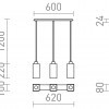 Hängende lineare Lampe mit Glasschirmen für LED-Lichtquellen mit E27-Gewinde. Perfekt für Küchen oder Esszimmer über dem Esstisch. |