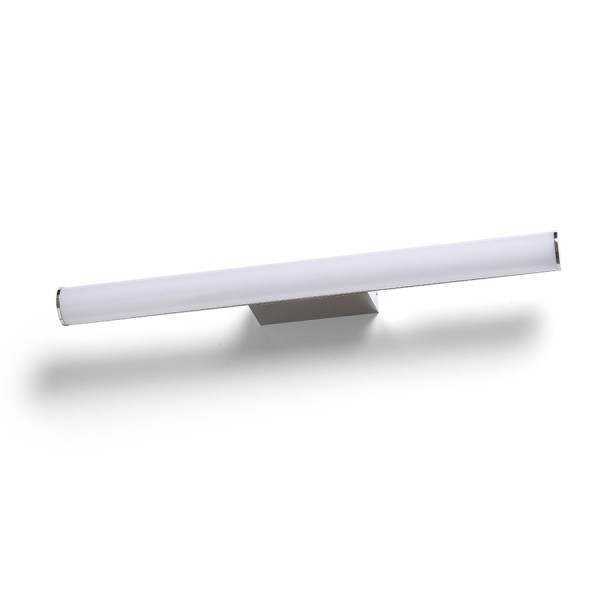 Wandmontierte LED-Röhre für Badezimmer auf rechteckigem Sockel. Die Lichtfarbe kann über einen Schalter im Inneren des Sockels auf 3000K oder 4000K eingestellt werden. |