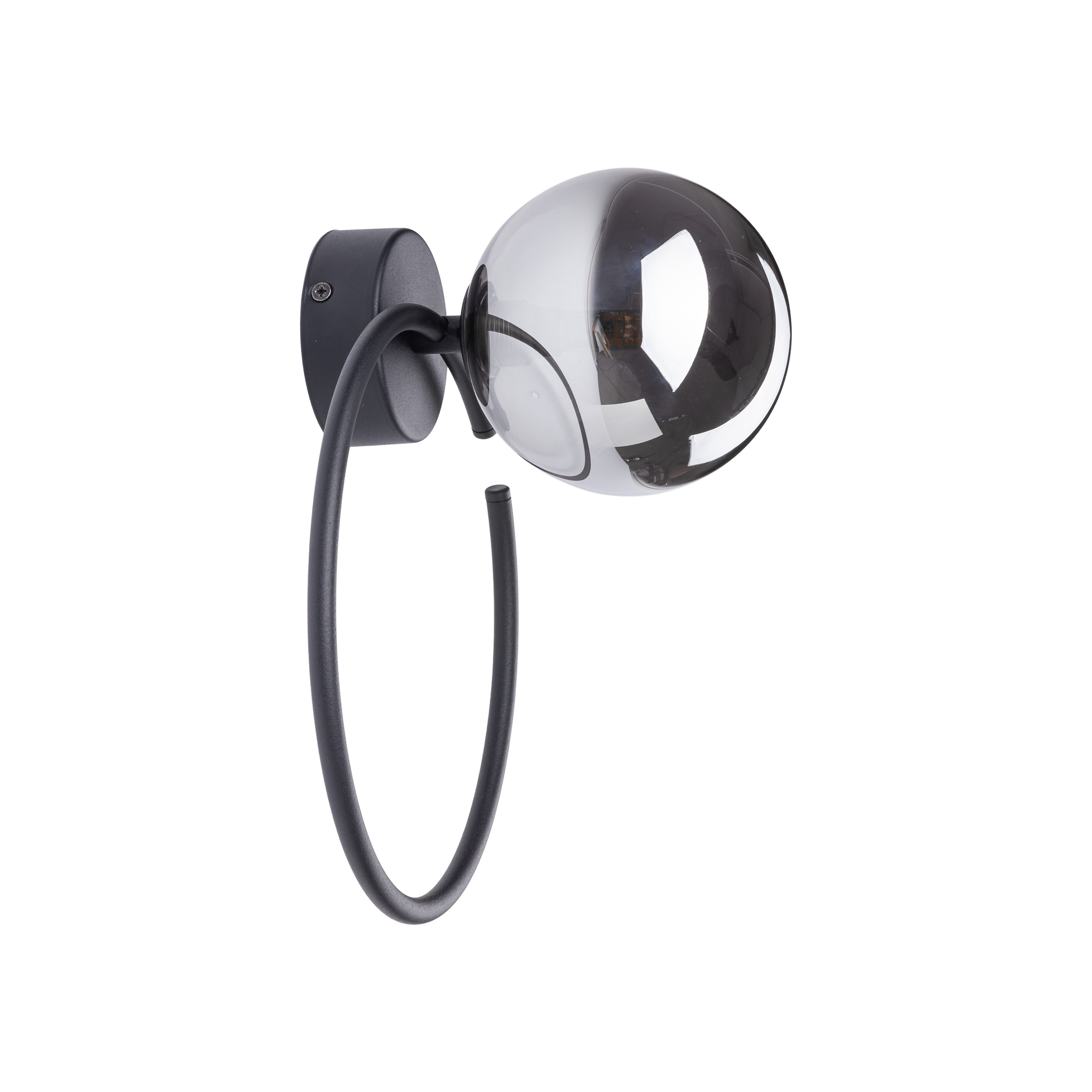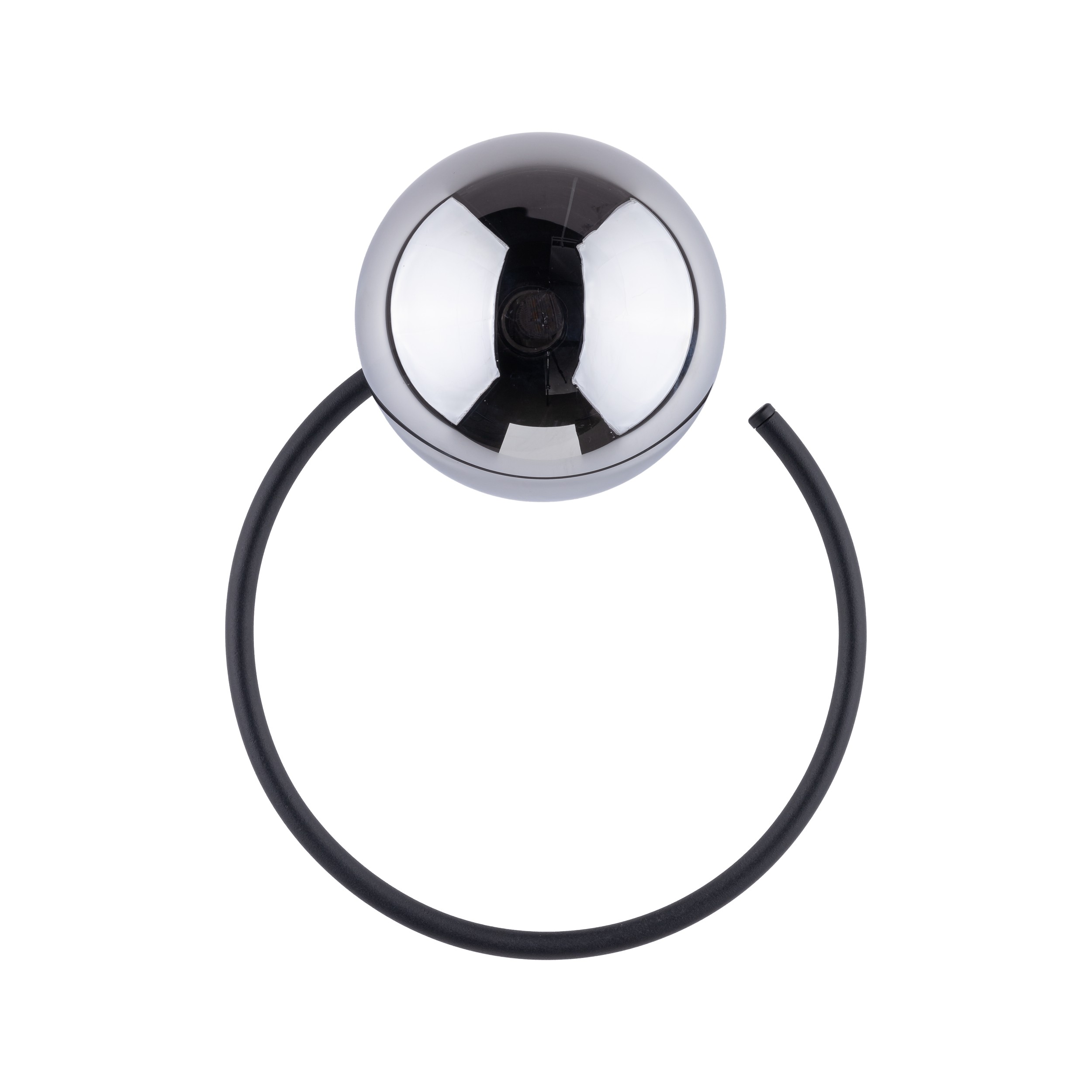 Interessante Kronleuchter aus Metall, Kunststoff und Glas. Es hat ein luxuriöses Gefühl. Sie werden ein interessantes Element in Ihrem Interieur bilden. Auf dem schwarzen Sockel sind schwarze Glaskugeln platziert. |