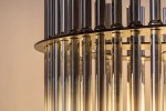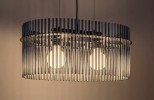 Die moderne Inesa-Lampe besteht aus mattschwarzem Metall und getönten Glaszylindern, die einen Schirm bilden, der die Glühbirne umgibt. Es eignet sich für Wohnzimmer, aber auch Esszimmer, Küche oder Schlafzimmer. |