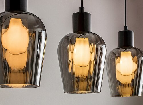 Die elegante Florian-Lampe ist im Vintage-Stil gefertigt. Ein zylindrisch geformter, getönter Glasschirm hängt an einem mattschwarzen Sockel. Mit klassischem E27-Gewinde. |