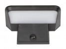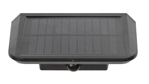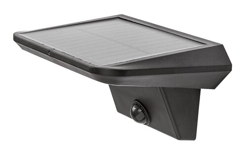 Solarwandleuchte mit Bewegungssensor. Es besteht aus Kunststoff mit weißem Schirm. Es leuchtet nach unten. Es erstrahlt in einem neutralen Weiß. Es eignet sich zur Beleuchtung von Gehwegen. |