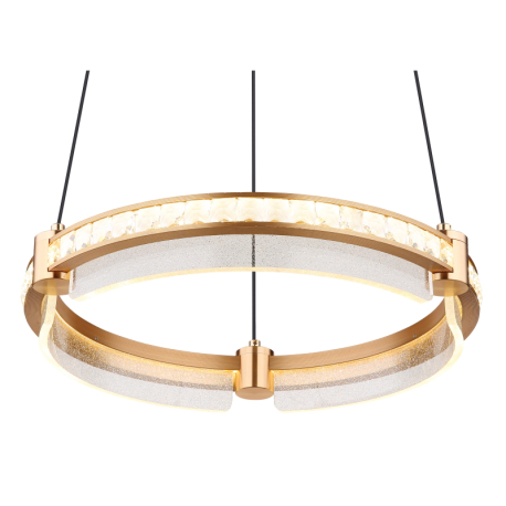 GL-67196-36H Závěsné svítidlo, kov zlaté barvy, hliník zlaté barvy broušený, křišťály K5 čiré, akryl čirý, stmívatelné, několik úrovní pomocí nástěnného vypínače, paměť, nastavitelná výška, dál.ovládání, ø:400mm H:1200mm, LED 36W 230V 240-2000lm 2700-6000K -