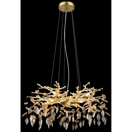 GL-64132-8 Závěsné svítidlo, kov zlatý matný, skleněné křišťály, jantarové, čiré, Ø:610 mm, V:1200 mm, bez žárovek 8mG9, Max. 8W 230V -
