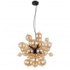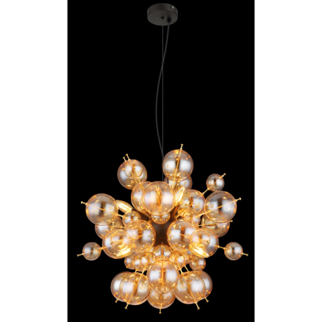 GL-15633HA Závěsné svítidlo, kov černý, kov zlaté barvy, skleněné koule jantarové barvy, kabel PVC černý, možnost zkrácení výšky, ø:550mm, V:1200mm, skleněné koule ø:24x6cm, 24x10cm, bez žárovek 6xE14 , Max. 25W 230V -