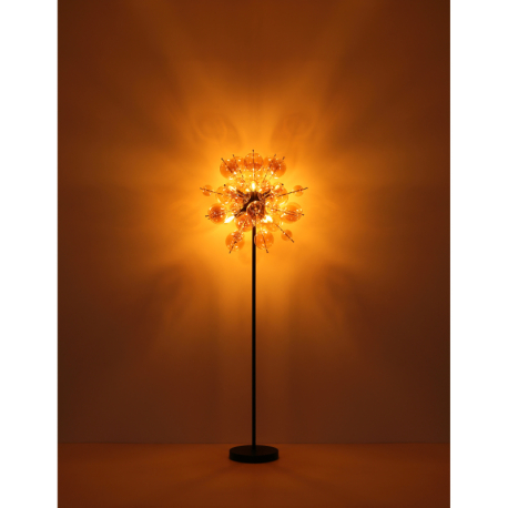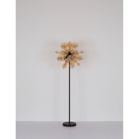 GL-15633SA Stojací svítidlo, kov černý, kov zlaté barvy, skleněné koule jantarové, kabel PVC černý, vypínač na kabelu, ø:550mm, V:1550mm, délka kabelu 1800mm, skleněné koule ø:24x6cm, 24x10cm , bez žárovek 6xE14, Max. 25W 230V -
