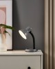 Eine einfache Lampe, die für ein Kinderzimmer oder ein Büro geeignet ist. Es besteht aus Kunststoff in Schwarz und Stahl in Silber. Die Lampe verfügt über einen flexiblen Hals, sodass sie je nach Bedarf so eingestellt werden kann, dass sie dort leuchtet, wo sie benötigt wird. |