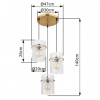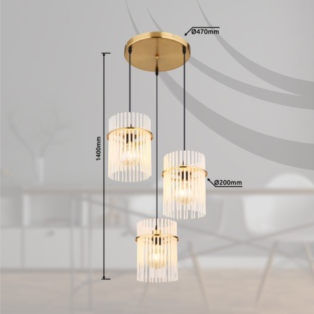 GL-15698-3HRM Závěsné svítidlo, kov zlaté barvy, skleněné tyče bílé, průhledné, kabel PVC černý, výškově nastavitelné, ø:470mm, V:1400mm, bez žárovek 3xE27, 60W 230V -