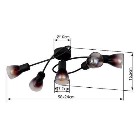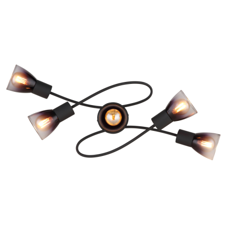 GL-54312-5 Stropní svítidlo, černý matný kov, sklo kouřové a průhledné, Dx?xV:580x240x165mm, bez žárovek 5xE14, max. 25W 230V -