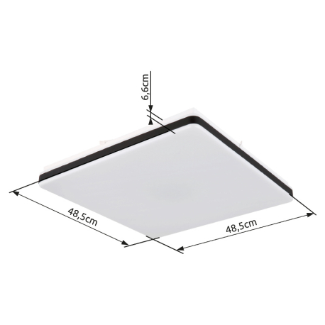 GL-48025OBSH Stropní svítidlo, kov bílý, plast černý, akryl opál, stmívatelné, fixace barev, SmartLight, pam. funkce, noční světlo, časovač, dál. ovládání, Dx?xV:485x485x66mm, LED 24W 230V, Výstup 100-1400lm, změna barvy světla 2700-6500K -